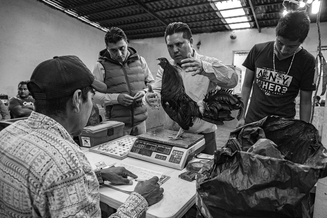 ¡Cierren las puertas! Resuena el grito por todo el salón. Hombres y mujeres se aprietan alrededor del improvisado ruedo y a la luz irregular de unas bombillas, dos gallos de pelea se enzarzan en un duelo a muerte. Vuelan plumas por el aire, el suelo se mancha de sangre y se oyen gritos de alegría o suspiros de decepción. Ha ganado el encuentro el primer gallo de la noche, tras matar a su contrincante con una afilada cuchilla atada a su pata. Son las peleas de gallos, una tradición tenebrosa que sucede en los rincones más recónditos de México.