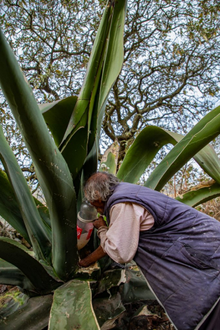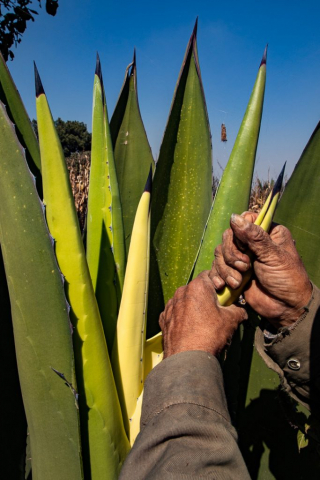 Son alrededor de quince años los que tarda en crecer un maguey hasta llegar al momento de partir su corazón. Raspar su tronco para extraer su savia no tomará más de tres o cuatro meses. Después de esto, morirá. Igual ocurriría si el tlachiquero decidiera no partirlo. En el punto culminante de su desarrollo, el maguey arroja por en medio de sus pencas un enorme tallo rematado por abundantes flores amarillas para luego marchitarse inevitablemente. Cada flor es un puñado de semillas que se esparcen por el campo, como si no fueran suficientes las crías que brotan por debajo de sus pencas. “Son sus hijitos” dice el tlachiquero, y los desprende con cuidado, los orea sobre las piedras y cuando la luna es creciente los siembra con la cara viendo al sol de la mañana.