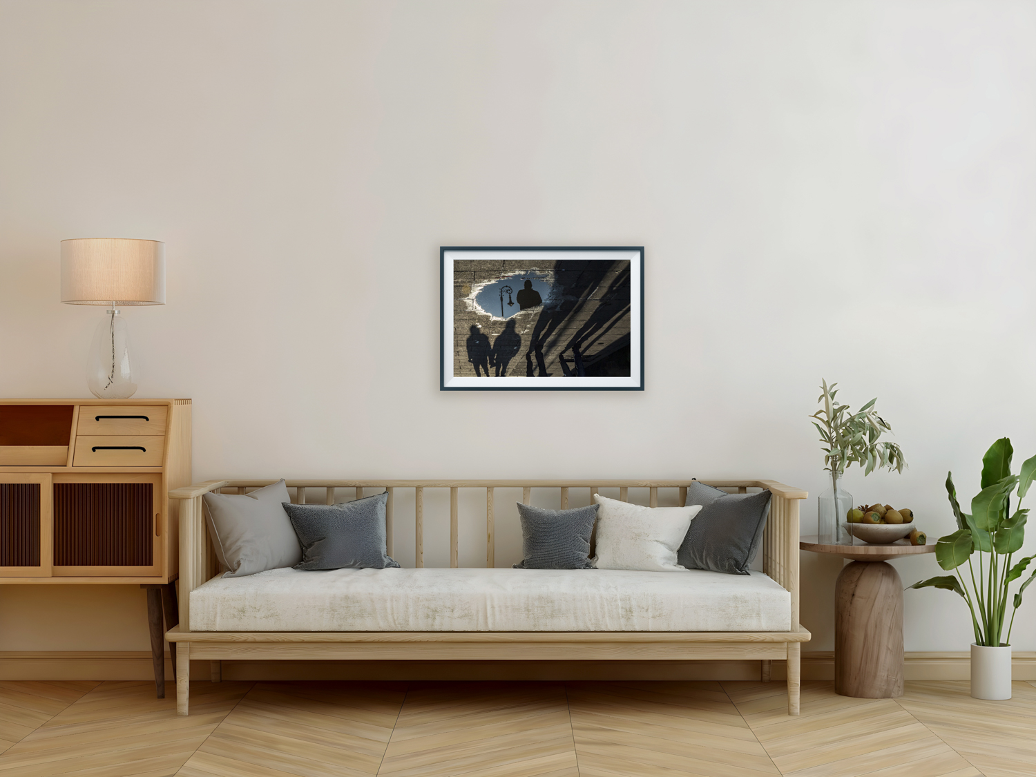 Marco de madera de cedro, encino o banak, con respaldo de foamboard libre de ácido y cristal claro de 2 mm